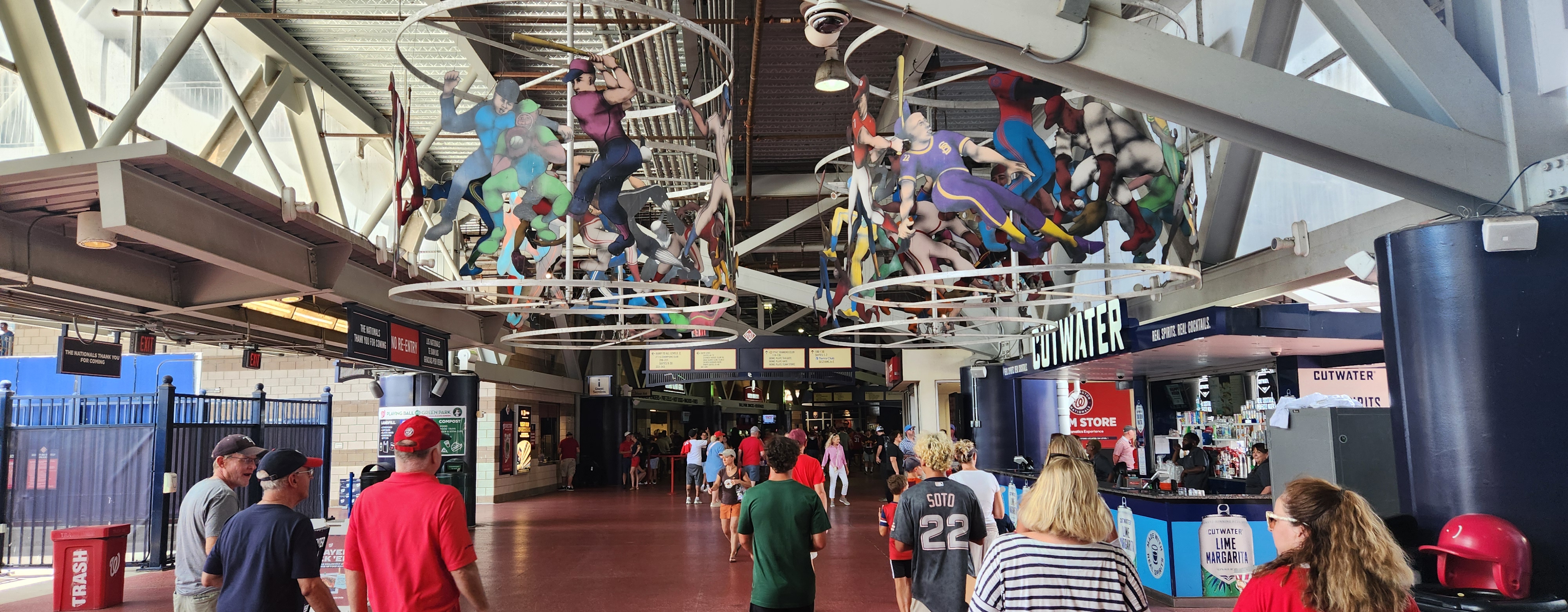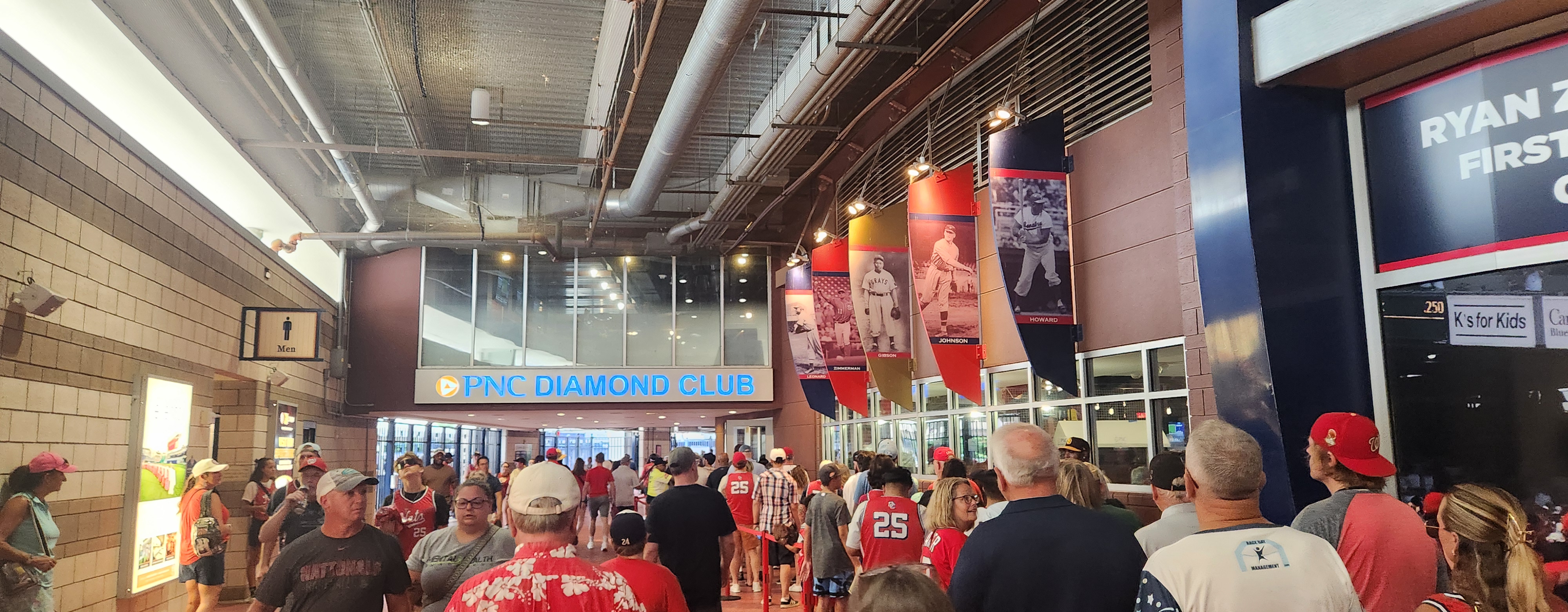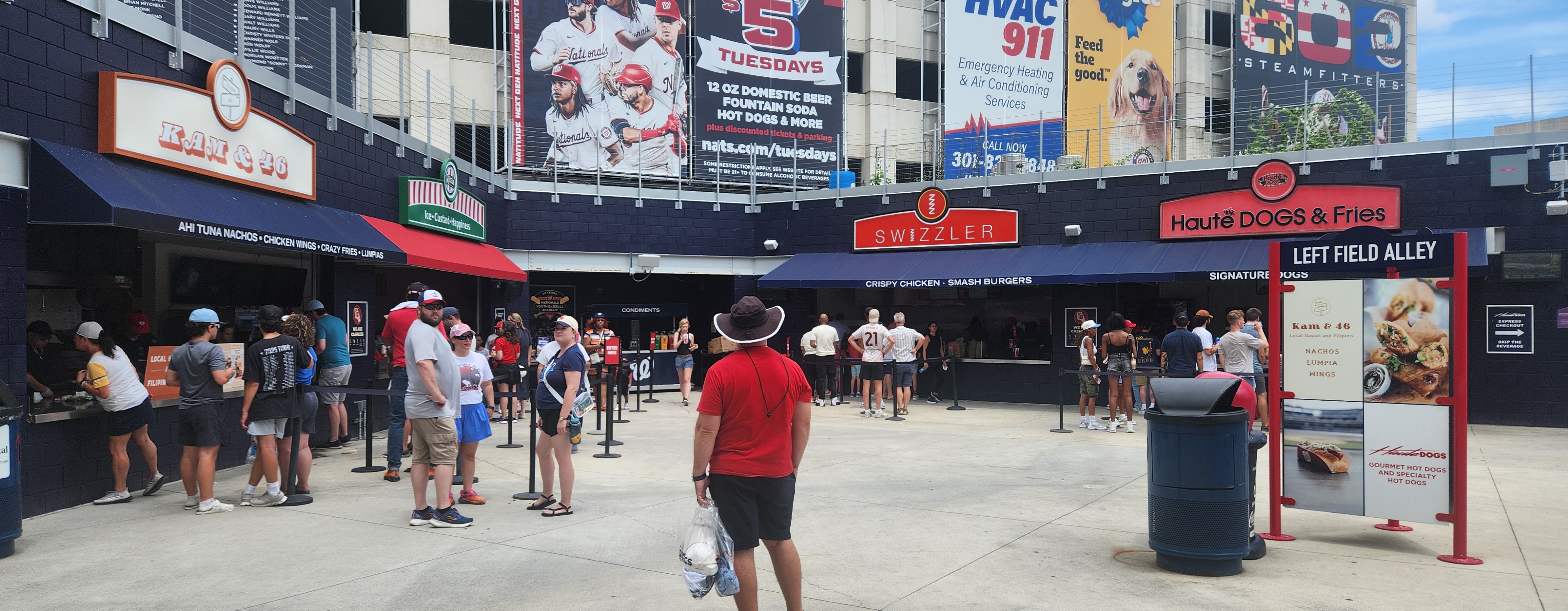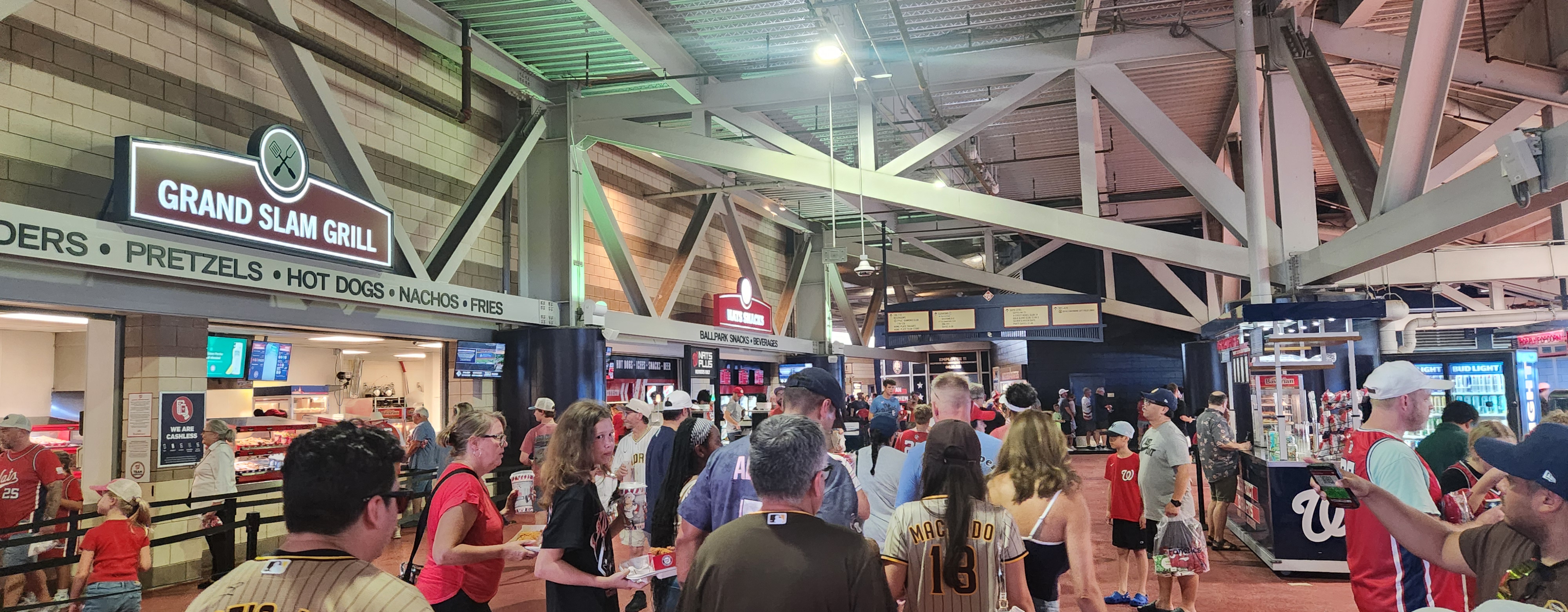 As you walk around the ballpark, you notice the concourse area is a standard size (not small or super large) but having so many stands on both sides of the concourse along with the ropes for their lines make the concourse even smaller: