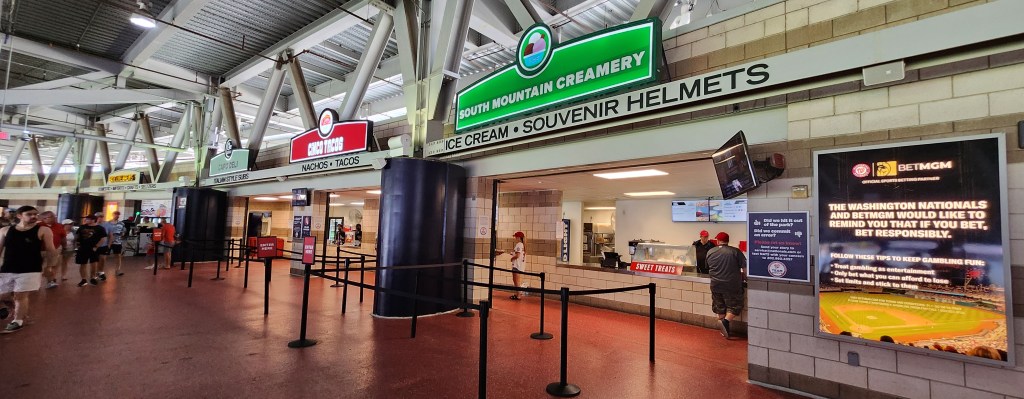 In terms of food, they offer a variety of different options besides the standard ballpark fare including locally inspired food but they don’t have actual local restaurants. It seems to be all their concessionaire’s own creations but with a local flavor, similar to what ballparks first started when branching out to more than peanuts, nachos and hot dogs. So while the food is decent, it doesn’t have the high quality being many unique great testing local foods as you see at other ballparks.