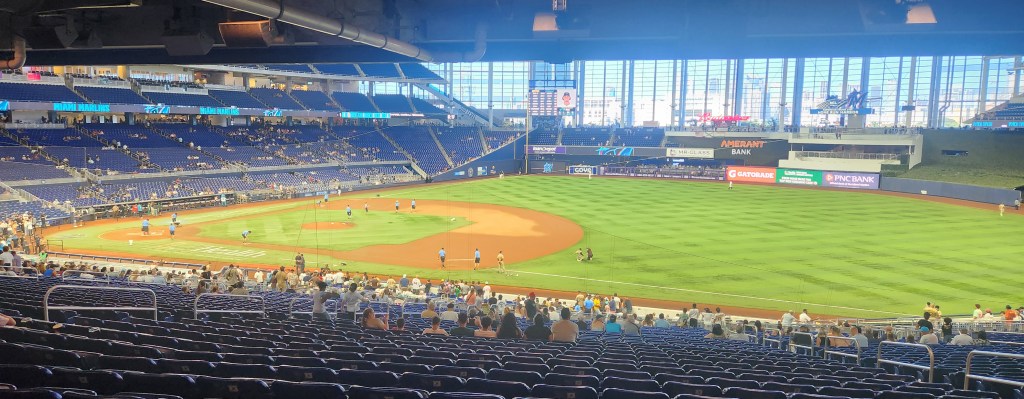 loanDepot park is located about 3 miles away from downtown Miami where we stayed and it’s on the way from Miami International Airport into downtown such that I thought it was the Miami Heat’s arena (Kaseya Center) when we were driving into the hotel.